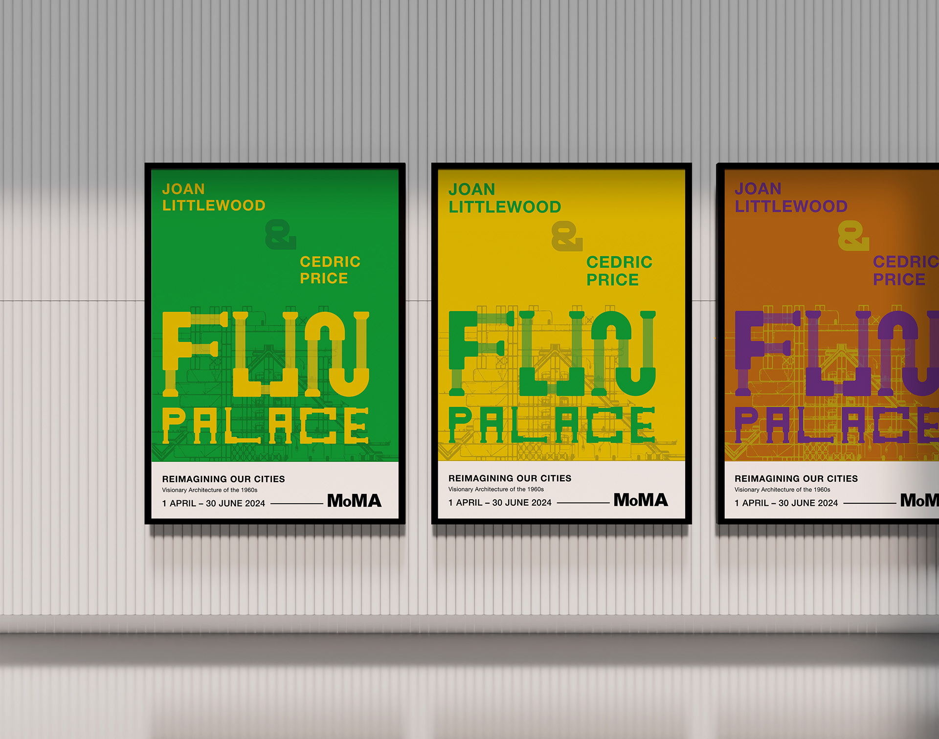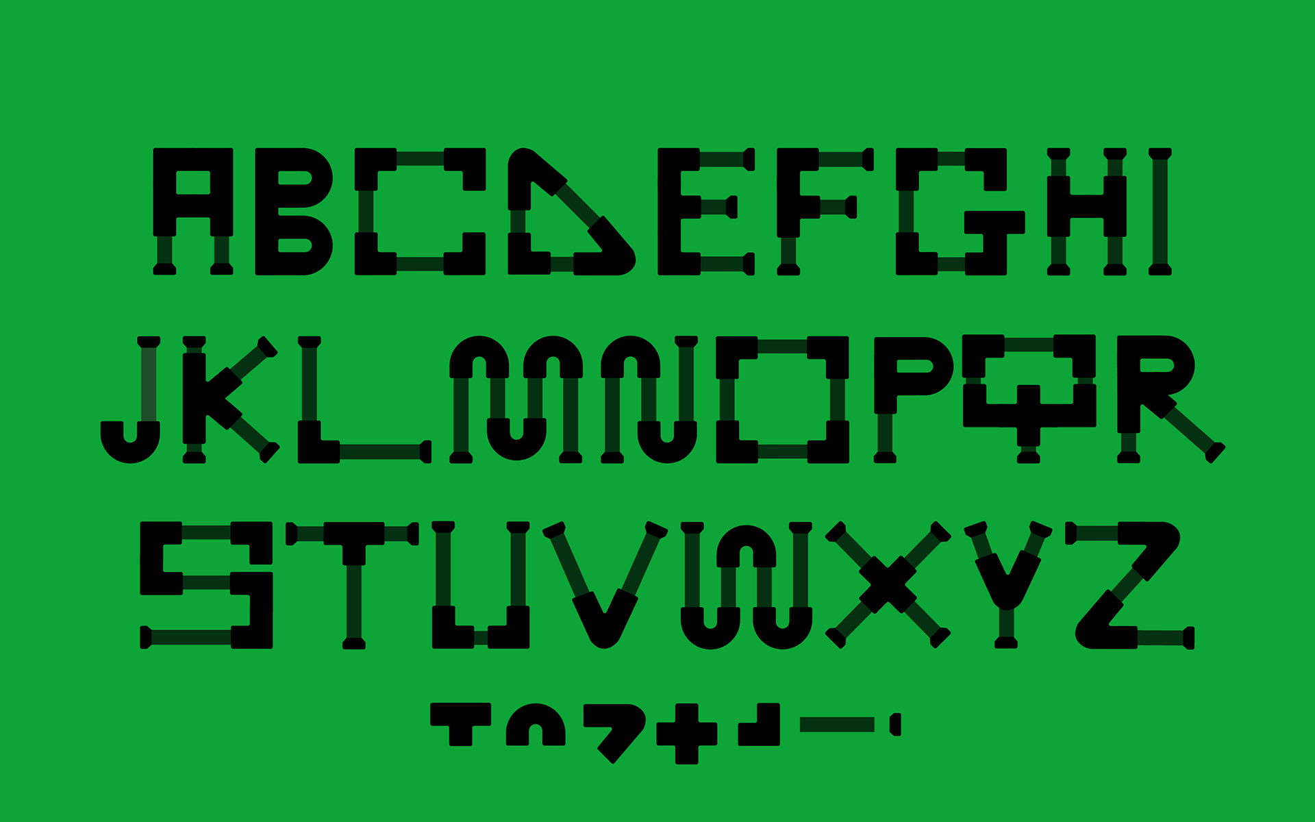 A typeface inspired by Richard Rogers’ ‘inside-out’ architecture as well as Joan Littlewood and Cedric Price’s Fun Palace, a 1960s visionary project to create a new kind of cultural centre: a ‘laboratory of fun’.
